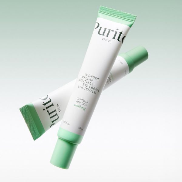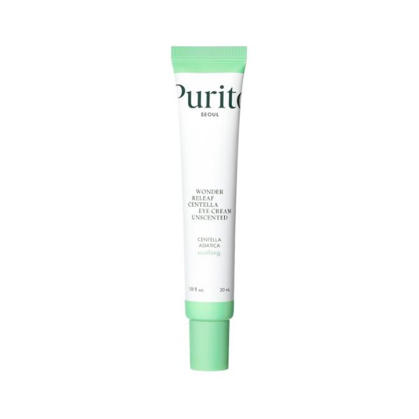 La crema contorno occhi PURITO SEOUL Wonder Releaf Centella Eye Cream Unscented senza fragranze e oli essenziali, si prende cura della pelle sensibile e reattiva con estratti di Centella Asiatica e Peptidi.